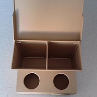 Plastové krmítko, gritník, 2 oddělené boxy s otvory na krmivo, nebo grit s otvory o průměry 4,5cm pro odchov. Krmítko je pro holuby, bažanty a exoty. Délka je 25cm, šířka 12cm, výška 14cm.