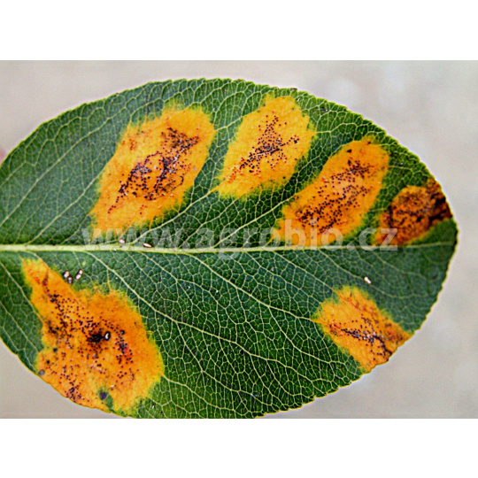 | Hrušeň, Stemfyliová skvrnitost - OL=28. Aplikujte preventivně, od rašení pupenů, objevení se listů, svazeček květů je zakrytý do váze pokročilého zrání, nárůst intenzity odrůdově specifického zbarvení. Aplikujte max. 2x za vegetaci. Dávku 2,34 ml / 1 l vody aplikujte jen 1x za vegetaci. Interval mezi aplikacemi je 7 dnů. | 2 ml / 1 l vody | Postřik | 4,5,6,7 aktuální aplikace  |  |