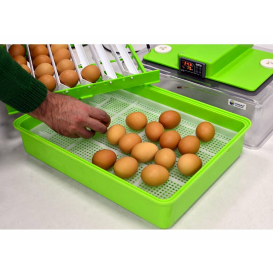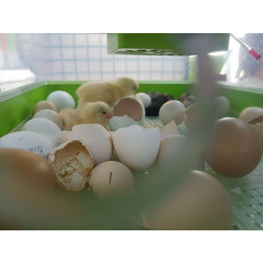vhodná k líhnutí vodní a hrabavé drůbeže - pro kuřata, křepelky, kachny, krůty, husy a bažanty. S automatickým otáčením až 30ks slepičích vajec - možnost i ručního otáčení vajec, s alarmem teploty a vlhkosti, s digitální regulací teploty od 36,6 do 38,3°C, s manuální regulací vlhkosti, s teploměrem a s vlhkoměrem.
