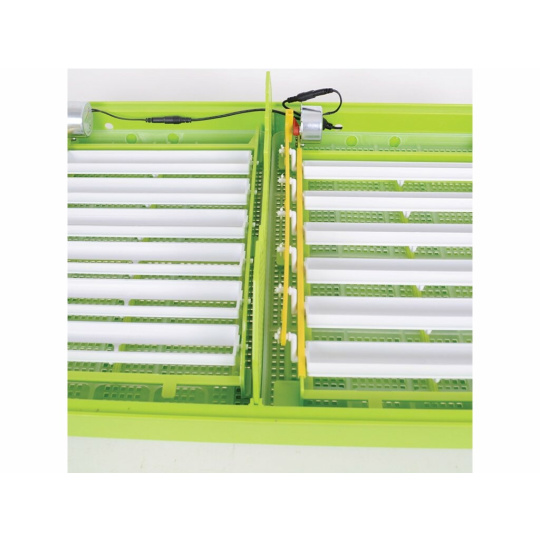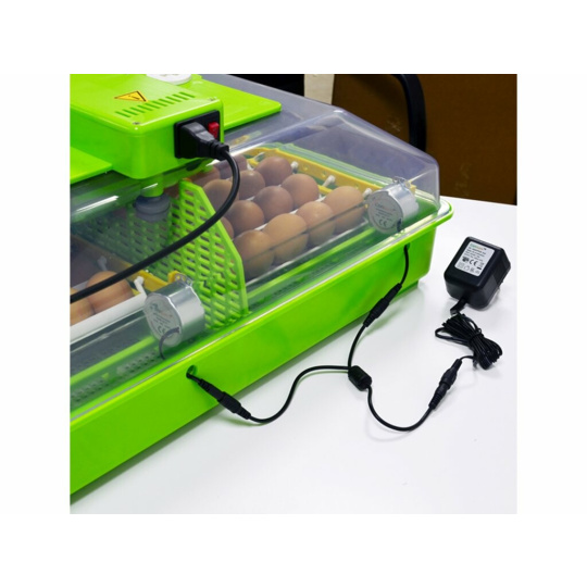 vhodná k líhnutí vodní a hrabavé drůbeže - pro kuřata, křepelky, kachny, krůty, husy a bažanty. S automatickým otáčením až 60ks slepičích vajec - možnost i ručního otáčení vajec, s alarmem teploty a vlhkosti, s digitální regulací teploty od 36,6 do 38,3°C, s manuální regulací vlhkosti, s teploměrem a s vlhkoměrem.