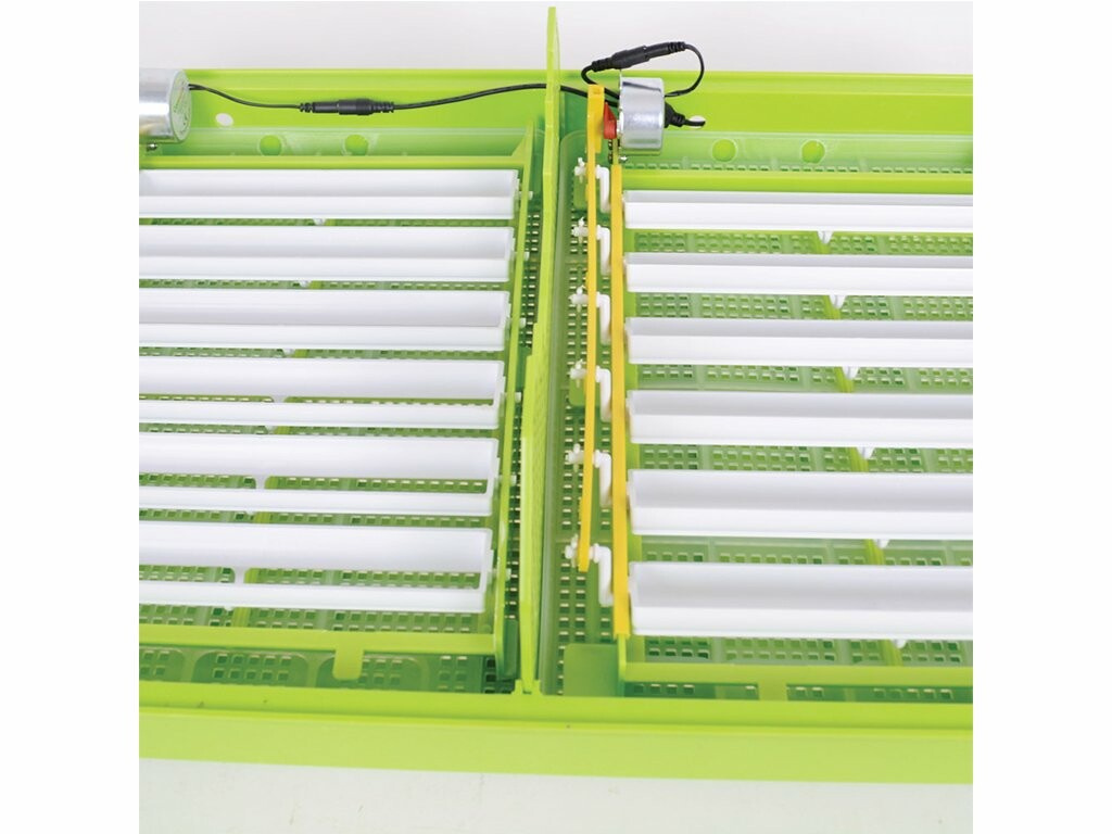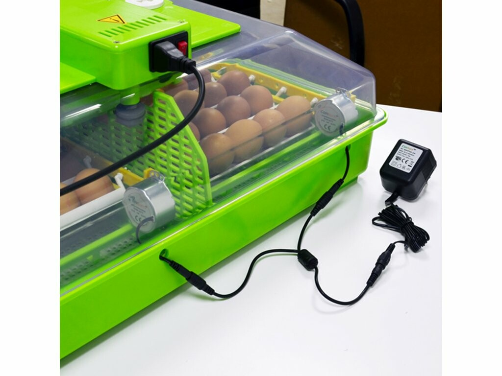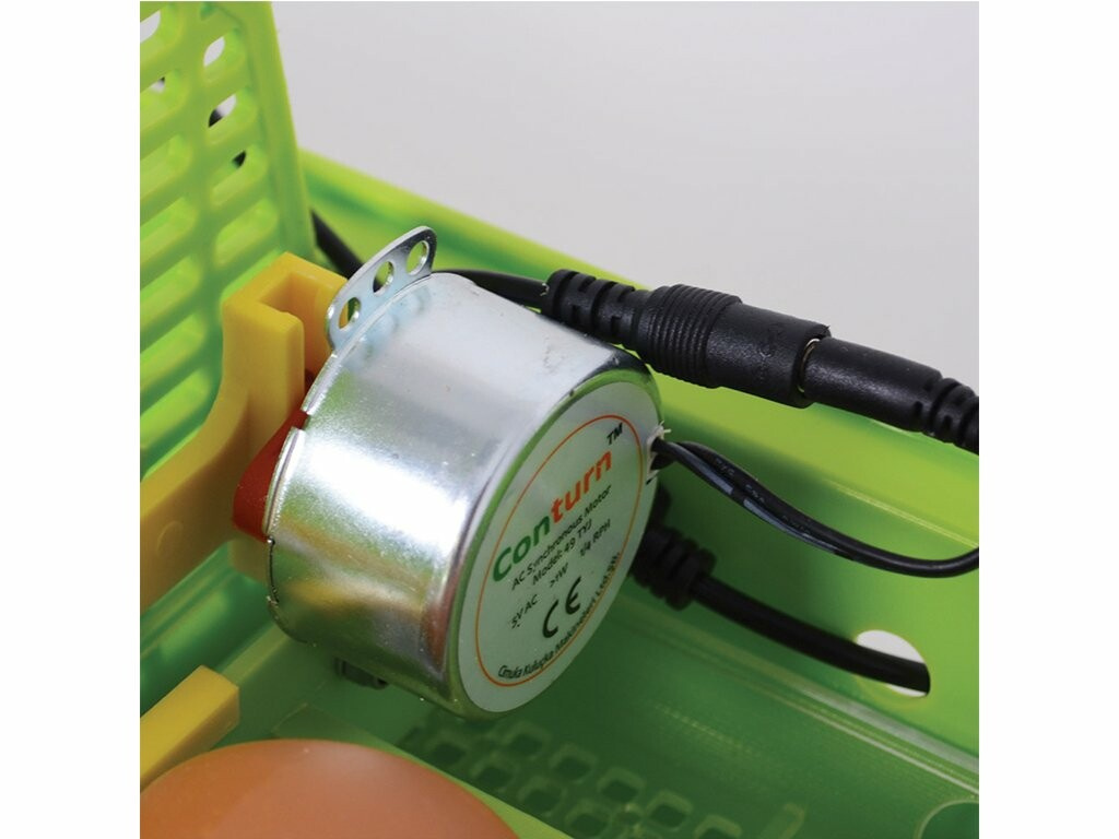 vhodná k líhnutí vodní a hrabavé drůbeže - pro kuřata, křepelky, kachny, krůty, husy a bažanty. S automatickým otáčením až 60ks slepičích vajec - možnost i ručního otáčení vajec, s alarmem teploty a vlhkosti, s digitální regulací teploty od 36,6 do 38,3°C, s manuální regulací vlhkosti, s teploměrem a s vlhkoměrem.