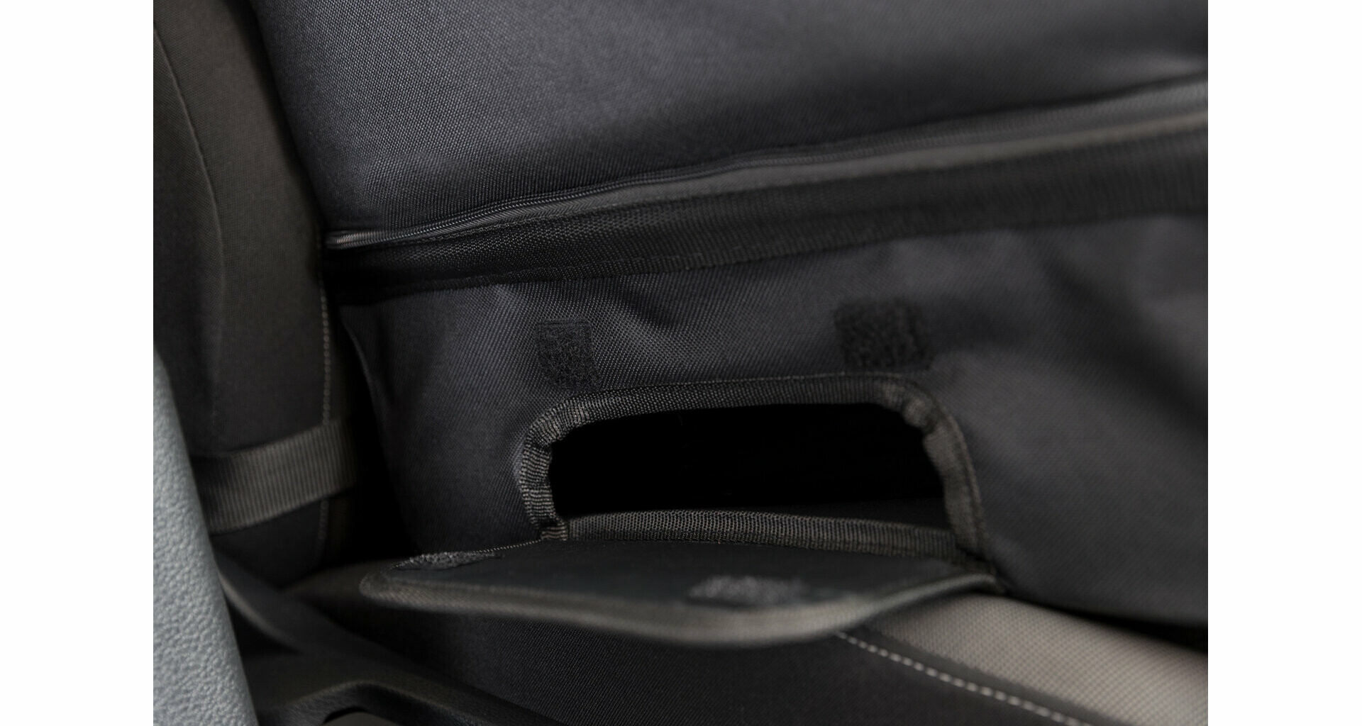 - vyvýšené sedadlo s přihrádkou dole umožňuje psovi koukat z okna