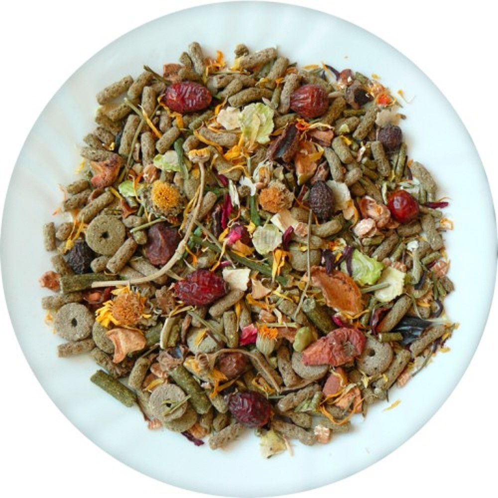Krmivo je speciálně navrženo, aby bylo stejně vyvážené jako přirozená potrava v přírodě. Obsahuje přírodní vitamíny. Krmte dle potřeby. Doplňujte o zelené krmivo, sušené pícniny, čerstvé ovoce a zeleninu. Zajistěte dostatek čerstvé pitné vody.Složení: vedlejší výrobky rostlinného původu, obiloviny, zelenina, ovoce, minerální látky, oleje a tuky. Deklarované jakostní znaky: hrubý protein 13%, hrubá vláknina 13%, hrubé oleje a tuky 3,3%.
