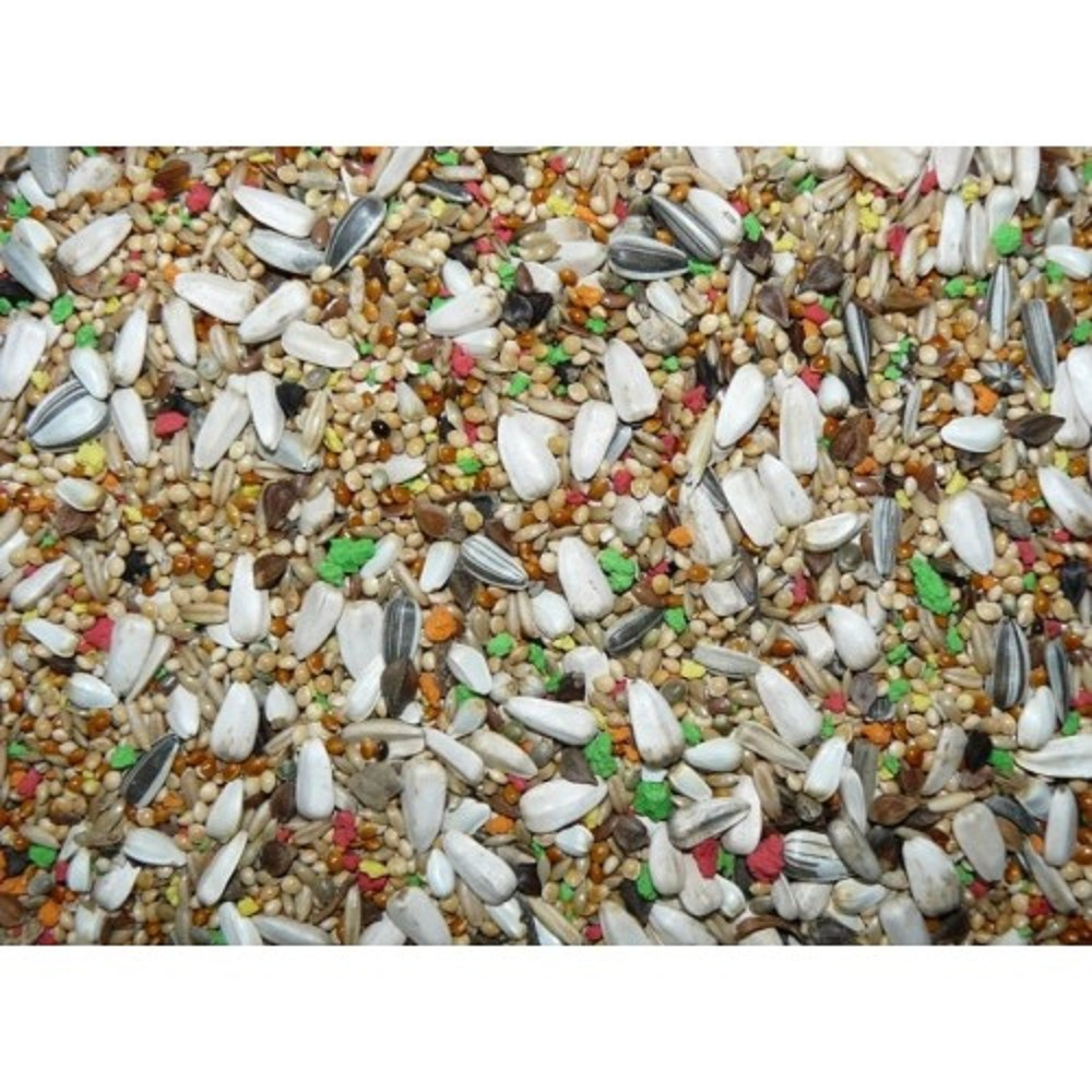 Složení: slunečnice bílá, oves bezpluchý, proso žluté, safrol, proso červené, proso bílé, slunečnice žíhaná, lesknice, pohanka, extrudovaná pšenice a kukuřice, drcené mořské lastury, burské ořechy, bez černý, sušená jablka, konopné semeno, len.Deklarované jakostní znaky: hrubý protein 12,4%, hrubá vláknina 9,6%, hrubé oleje a tuky 11,3%.Krmný návod: krmte podle potřeby. Doplňujte o čerstvé ovoce, zeleninu aj. Pro lepší trávení podávejte říční písek, nebo grit. Zajistěte dostatek čerstvé pitné vody. Staré zbytky krmiv pravidelně odstraňujte.