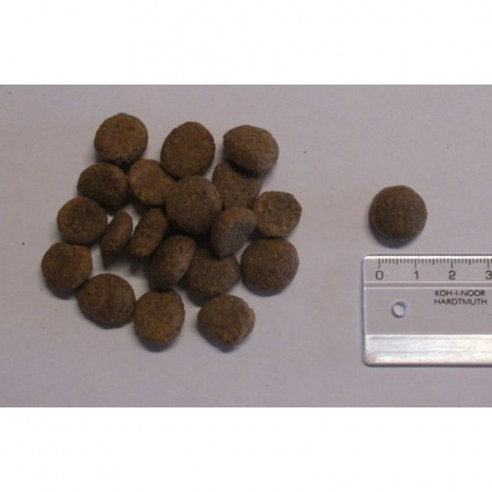 Krmivo bez sóji a cukru, neobsahuje geneticky modifikované suroviny, konzervační látky. Sušení je jediná použitá metoda ke konzervaci granulí. Chuť a barva pochází pouze ze syrových surovin, které jsou bez jakýchkoliv umělých přísad.Složení: obiloviny, maso a živočišné vedlejší výrobky, vedlejší výrobky rostlinného původu, oleje a tuky, minerály.Deklarované jakostní znaky: hrubý protein 20,0%, hrubý tuk 8,0%, hrubá vláknina 2,6%, hrubý popel 7,8%, vápník 1,70%, fosfor 0,70%Metabolizovaná energie 3524 kcal/kg