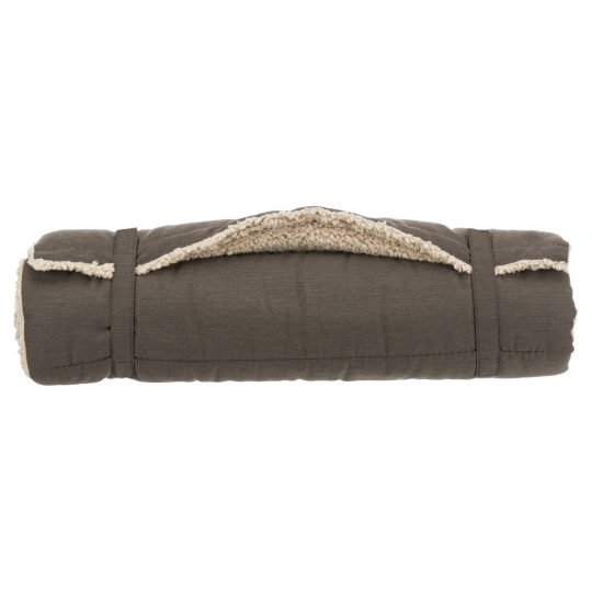 Popis produktu vysoce kvalitní plyšová/robustní tkanina polyesterový potah polyesterová plyšová náplň (4 cm) prošívaná snadno se sroluje a zapne na popruh pomocí suchého zipu, což ušetří místo při uložení s rukojetí pro pohodlné přenášení optimální pro cestování s domácím mazlíčkem teplé místečko na stu... více