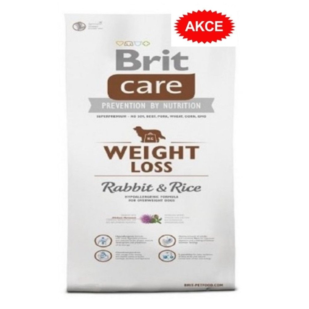 Brit Care Dog Hypoallergenic Weight Loss. Hypoalergenní receptura Králík a rýže pro dospělé psy všech plemen s problémy s nadváhou. Kompletní krmivo pro psy.