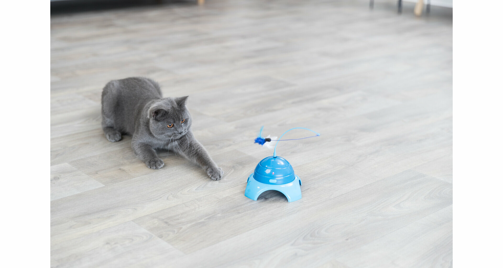 Catch Me motorová raketa s vábničkou na provázku je interaktivní hračka pro kočky. Díky baterií poháněnému motoru se hračka otáčí dokola. Tento pohyb napodobuje kořist a stimuluje lovecký instinkt kočky, což ji udržuje neustále aktivní. Součástí balení je náhradní tyčinka s peříčky, kterou můžete snadno vyměnit.