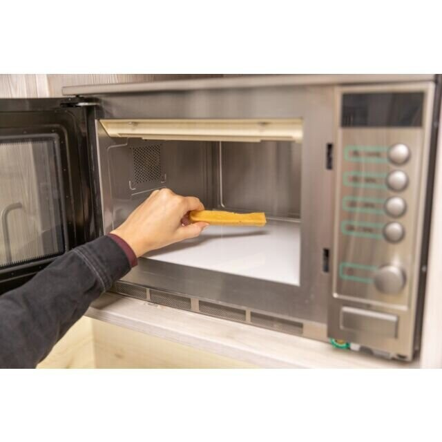 Malé kousky pamlsku nebo celý pamlsek nechte pod dohledem nafouknout v mikrovlnné troubě po dobu 49 až 90 vteřin.