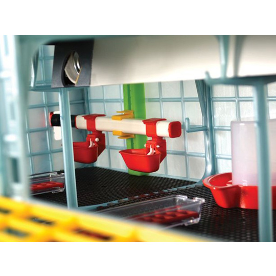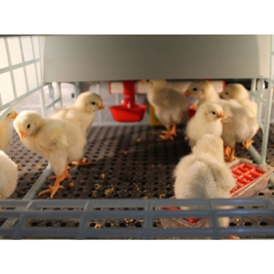 Odchovna drůbeže, až 45 kuřat, 1 patrová klec, regulovatelná výhřevná jednotka, krmící a napájecí systém, rozměry 104x60x59 cm. Jedná se o dokonale navrženou klec k odchovu kuřat, křepelek, kačen, hus či bažantů. Kuřátka budou v této odchovně krásně prosperovat, jelikož tato 1 patrová klec se 3 oddíly a výškou stropu 24cm poskytuje naprosto vše, co drůbež ke svému růstu potřebuje. Moderní odchovna kuřat je vybavena výhřevným systémem s elektronickým termostatem 0-40°C a výstupem na žárovku. Samozřejmostí je velkokapacitní krmítko s mřížkou proti plýtvání krmiva, napaječky s přívodem vody z 8l zásobníku a výsuvný trusník. Perfektní je, že odchovnu můžete v budoucnu rozšířovat o další poschodí. Čištění odchovny je opravdu snadné, jelikož odchovna s patentovanou technologií Comfortplast je vyrobena z velice kvalitního, odolného, snadno umyvatelného plastu, a bude Vám dělat radost po mnoho let.