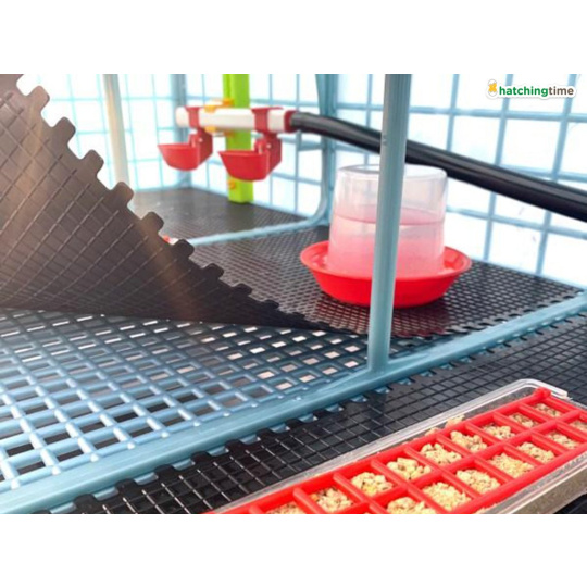 Součástí balení jsou tři přenosné krmné misky pro první dny života mláďat a odchovna drůbeže je také vybavena závěsným velkokapacitním krmítkem pro zásobu krmení až na 2 dny pro každé mládě. Krmítka jsou vyrobena z kvalitního plastu, odolné proti nárazům a velice snadné k údržbě. Navíc jsou krmítka vybavena speciální mřížkou, která zamezuje mláďatům v rozhrabování krmiva, a tím nedochází k jeho plýtvání. Mřížka je navržena k přiměřenému pohybu při spotřebě krmiva.