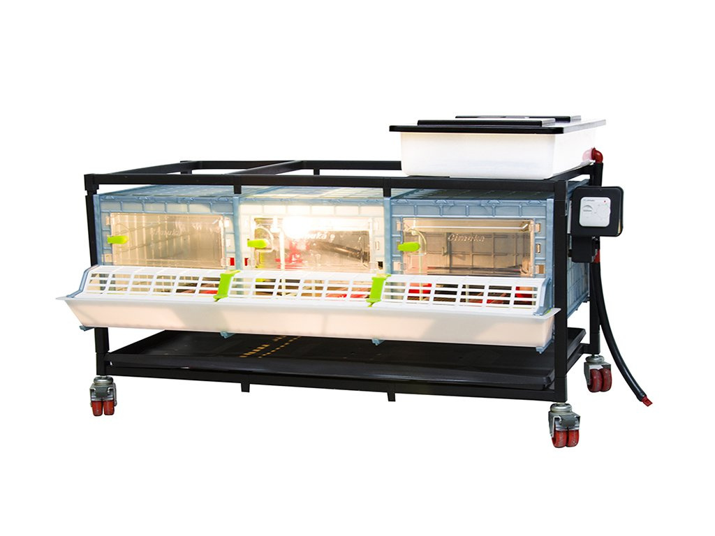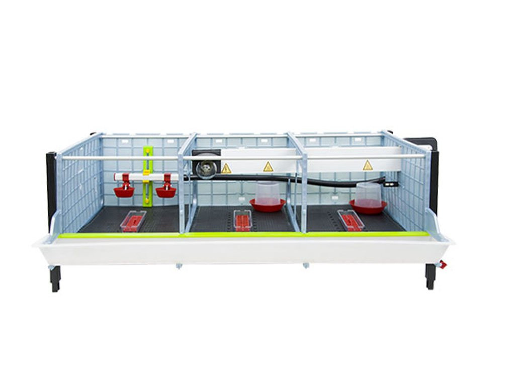 Odchovna drůbeže vhodná k chovu pro 40 až 45ks kuřat s patentovanou technologií Comfortplast o rozměrech 104 x 60 x 59 cm. Jedná se o 1 patrovou klec s 3 oddíly, které jsou vybaveny ohřevnou lištou s nastavitelným termostatem a výstupem na žárovku, krmítky s mřížkou proti plýtvání krmiva, napáječkami s přívodem vody z 8 litrového zásobníku.