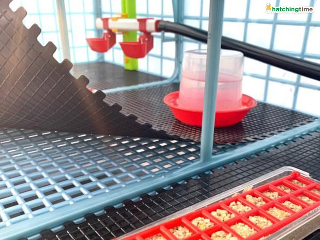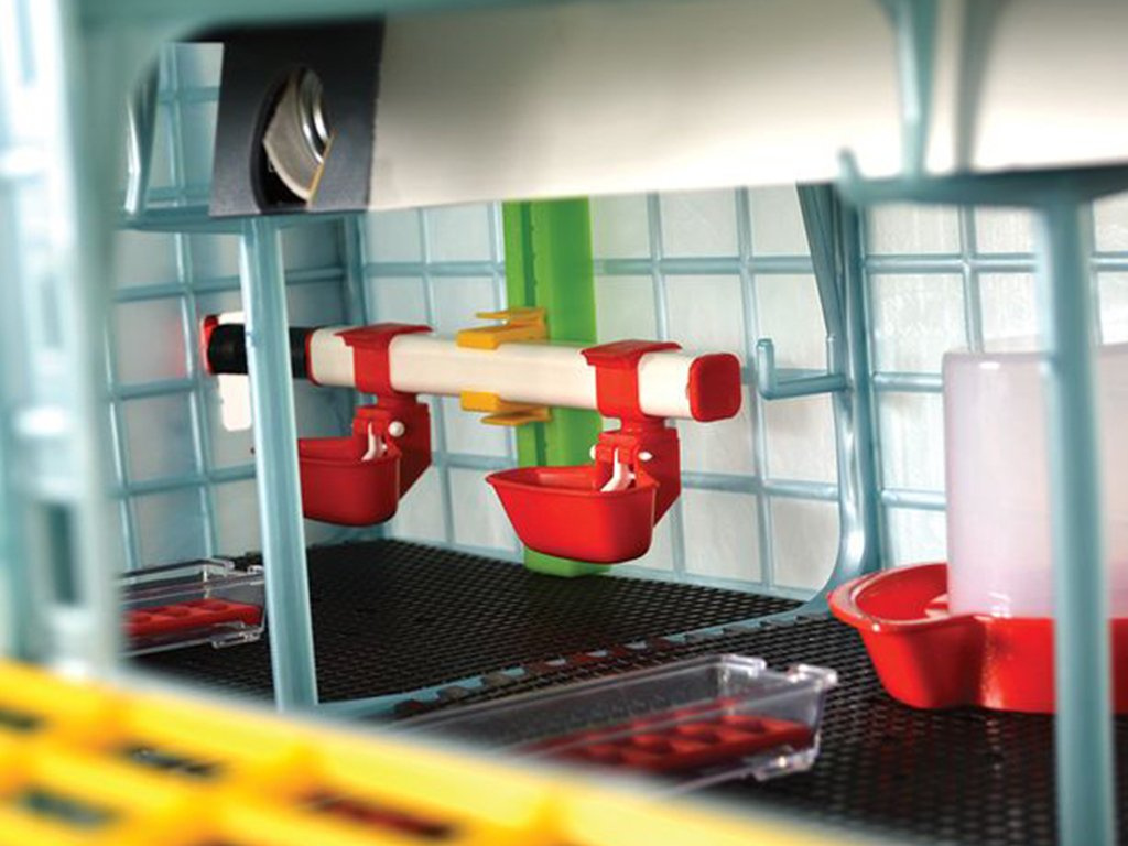 Součástí balení jsou tři přenosné krmné misky pro první dny života mláďat a odchovna drůbeže je také vybavena závěsným velkokapacitním krmítkem pro zásobu krmení až na 2 dny pro každé mládě. Krmítka jsou vyrobena z kvalitního plastu, odolné proti nárazům a velice snadné k údržbě. Navíc jsou krmítka vybavena speciální mřížkou, která zamezuje mláďatům v rozhrabování krmiva, a tím nedochází k jeho plýtvání. Mřížka je navržena k přiměřenému pohybu při spotřebě krmiva.