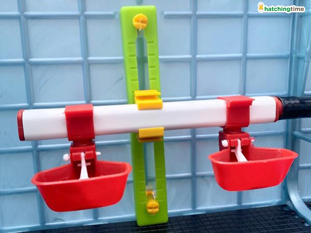 Odchovna je vybavena dvěma kloboukovými napáječkami pro první dny života mláďat a dvěma výškově nastavitelnými niplovými napáječkami, které poskytují bezproblémový a hygienický způsob napájení mláďat uvnitř klece. Součástí niplových napáječek jsou i přídavné misky na vodu, které tak vytváří kvalitní automatické napáječky a také zamezují mláďatům k jejich namáčení. Voda do automatických napáječek je přiváděna z průhledného zásobníku vody pomocí systému hadic. Zásobník proto nabízí dokonalý přehled o aktuálním stavu hladiny vody, jeho víko chrání vodu před znečištěním a také zajišťuje chovatelům snadné doplňování dle potřeby.