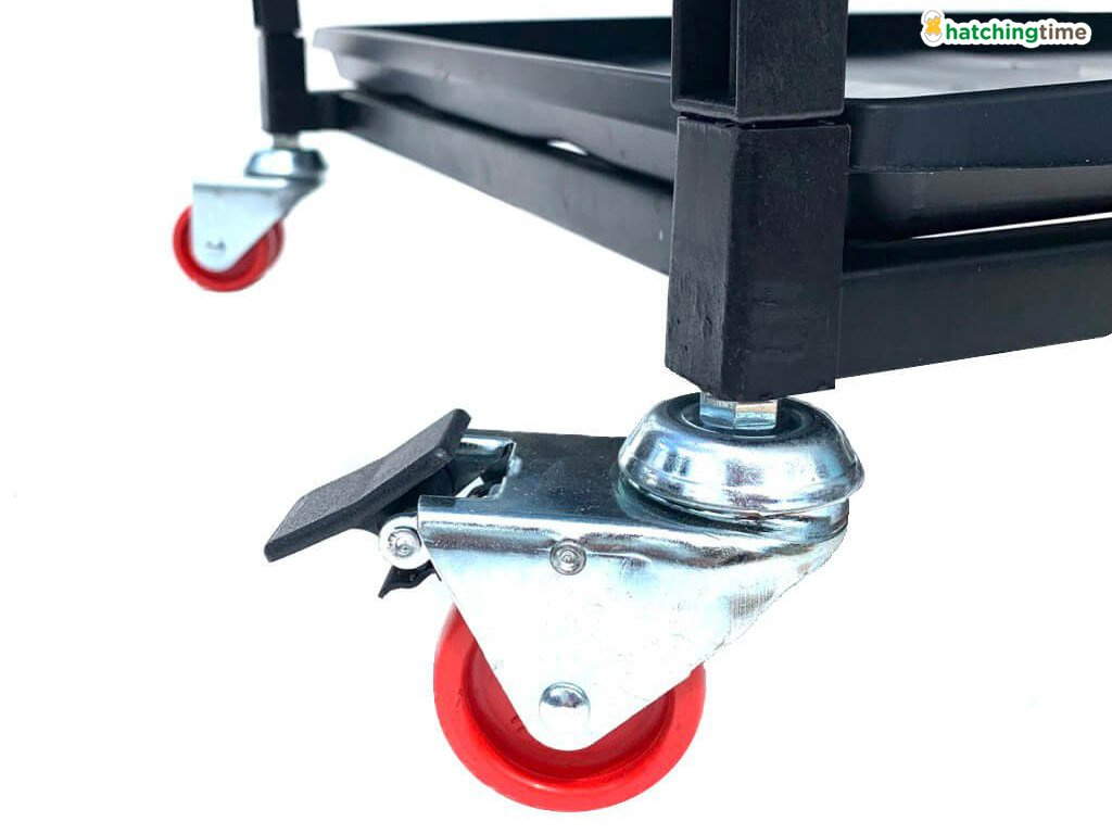 Rozměry složené odchovny drůbeže včetně koleček, nádržky na vodu, ohřevné jednotky a krmítka jsou 104 x 60 x 59 cm.