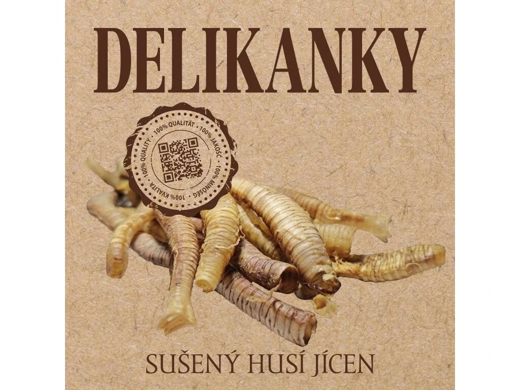 Sušený husí jícen. 100% přírodní voňavý, žvýkací pamlsek pro psy. Napomáhá čistit chrup a podporuje žvýkací svaly.