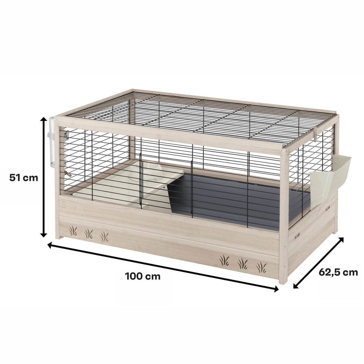 Arena 100 je prostorná klec ideální pro králíky. Jedinečnost této klece spočívá v praktičnosti a elegantní kombinaci dřeva a kovové mřížky, která působí přirozeně a zároveň moderně.