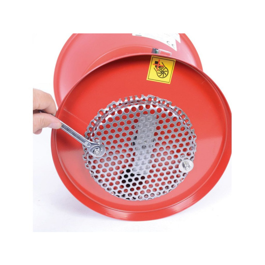 Jakmile bude surovina sešrotována dle zvoleného síta na požadovanou hrubost, propadne do zásobníkového barelu, který má objem 50l. Po ukončování šrotování je možné barel uzavřít víkem s pojistným zámkem a v tomto barelu suroviny uchovávat po dobu potřeby.