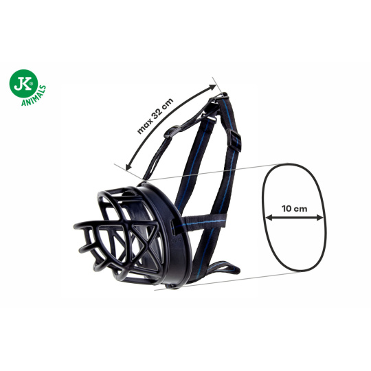 Plastový náhubek pro velké psy s nastavitelnými pevnými nylonovými popruhy pro dokonalé přizpůsobení. Díky anatomickému tvaru je náhubek vhodný i pro dlouhodbé nošení. Náhubek je vybavený poutkem ve spodní části pro uchycení k obojku, aby si ho pes nesundal. Plastový náhubek v zimě nezamrzá a nestudí, lehce se nasazuje a je ideální pro cestování například v městské hromadné dopravě. Je také vybavený horním popruhem pro pevné držení na hlavě.