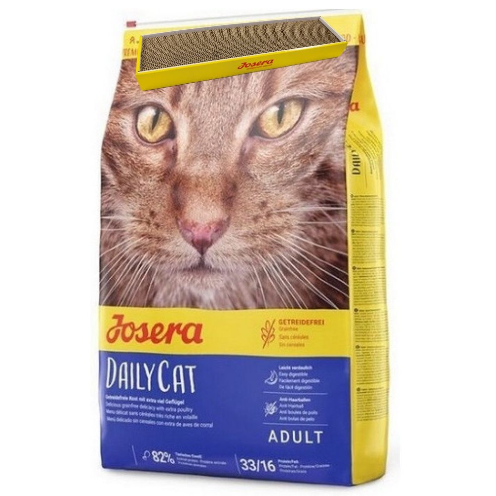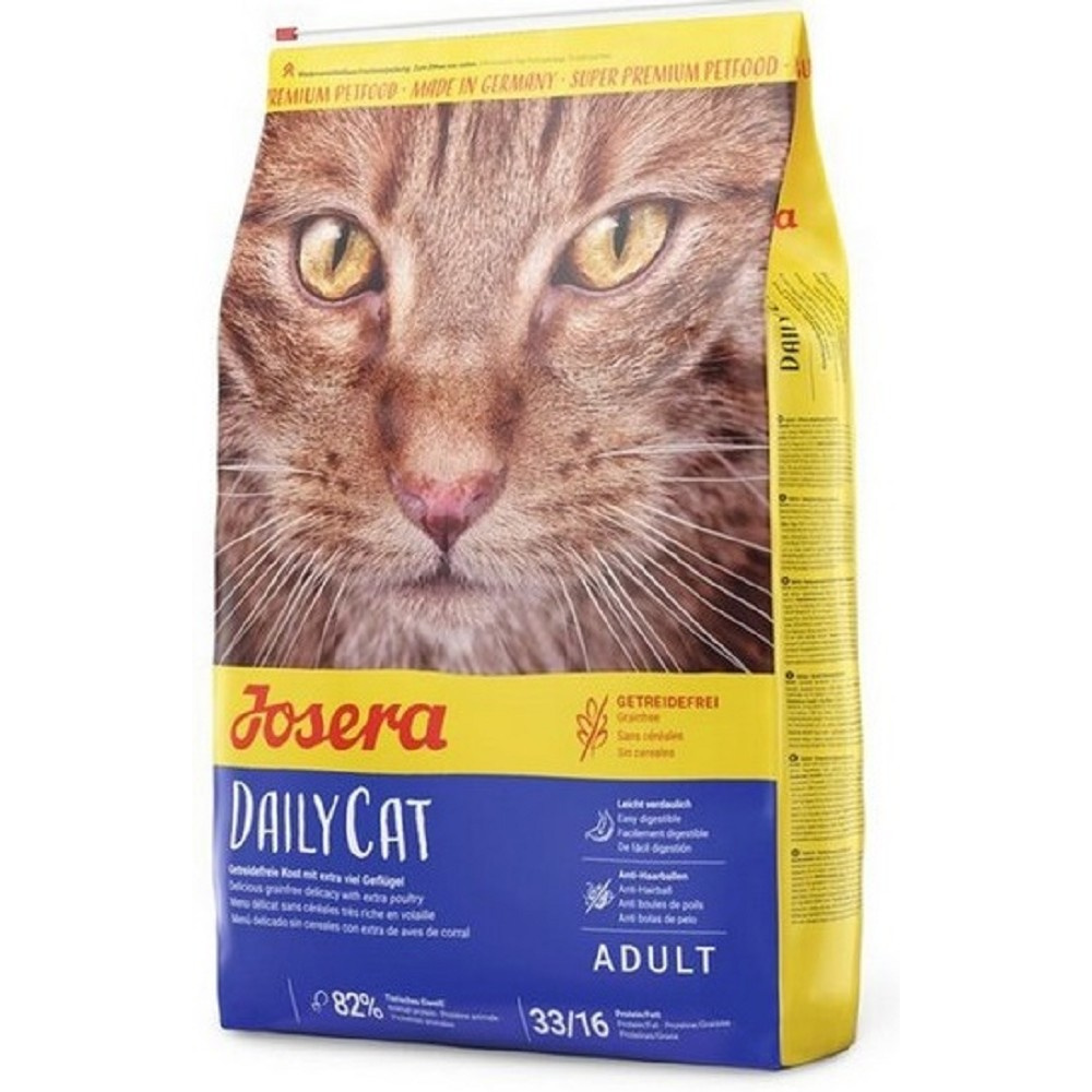 Jedná se o bezobilné krmivo, které je vhodné i pro kočky s alergiemi či intolerancemi. Josera DailyCat bylo vyrobeno v Německu a prošlo přísnými kontrolami kvality, byly použity pouze vysoce kvalitní ingredience. Krmivo obsahuje vybrané byliny, ovoce a speciální vlákninu. Poslední jmenovaná látka působí proti tvorbě chlupových bezoárů a pomáhá projít spolykaným chlupům přes trávící trakt zvířete.
