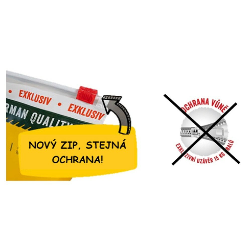 Doplňkové vyživovací látky na 1kg: Vitamín A 24.000 IE, Vitamín D3 1.800, Vitamín E 220mg, Vitamín C (askorbylmonofosfát vápenatý sodná sůl 200mg, Vitamín B1 15mg, Vitamín B2 20mg, Vitamín B6 20mg, Vitamín B12 100mcg, kyselina pantothenová 50mg, niacinamid 90mg, kyselina listová 5mg, L-Carnitin 250mg, Taurin 1000mg, biotin 1000mcg, vitamín C 100mg, železo (sulfát železa, monohydrát) 200mg, zinek (chelát zinku glycin, hydrát) 180mg, mangan 18mg, měď (chelát měďnatý glycin, hydrát) 16mg, jód (jodičnan vápníku) 2,2mg, selen 0,3mg.