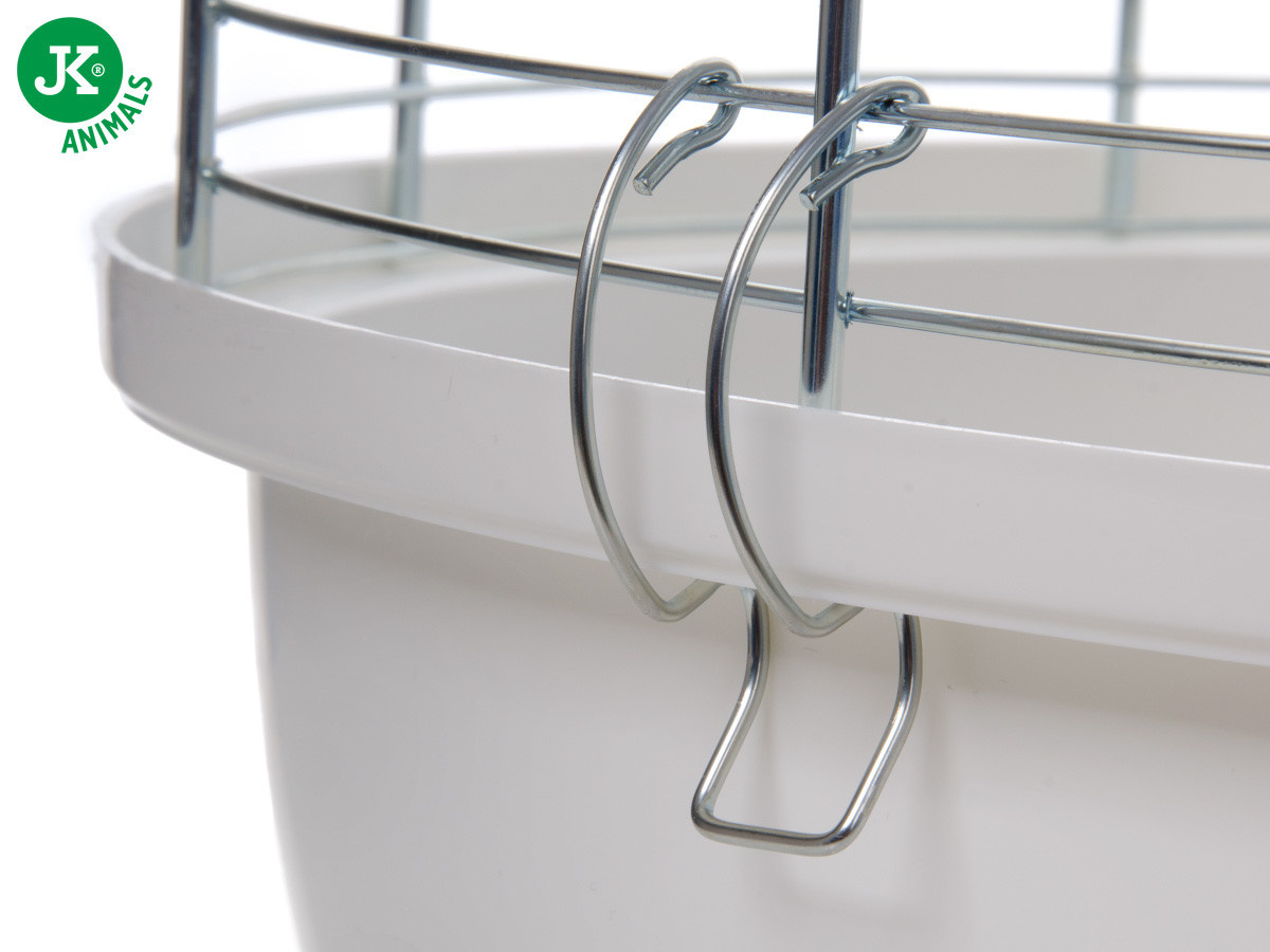 Klec Julia 3 pozink - elegantní pozinkovaná klec pro ptáky. Dno klece je opatřeno dvěma výsuvnými šuplíky, díky kterým se výměna podestýlky provádí zvenčí a je tak snadnější a pohodlnější.