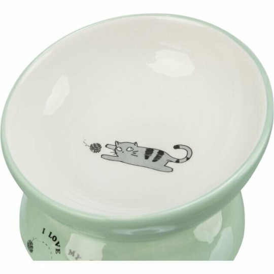 Keramická miska vyvýšená s motivem kočky, ergonomický tvar 0,15l /13cm, šalvěj / bílá