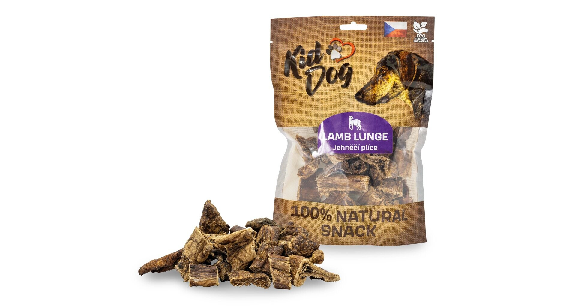 KIDDOG 100% Natural Snack, jehněčí plíce 2-4 cm / 80 g