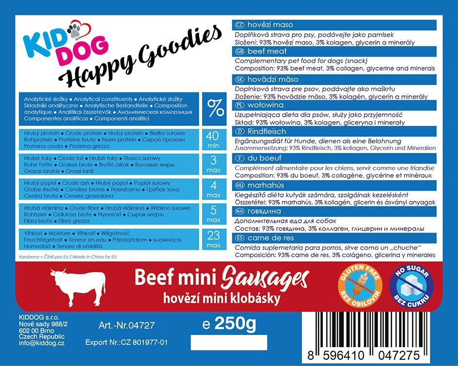 KIDDOG hovězí mini klobásy 250g