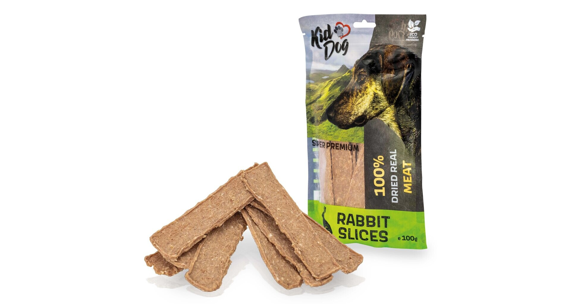 Kiddog Superpremium Snack je monoproteinový šetrně sušený produkt. Králičí maso je dietní a lehce stravitelné s nízkým obsahem tuku ale vysokým obsahem bílkovin. Je také přírodním zdrojem vitamínů B2, B6 a B12. Rovněž obsahuje řadu důležitých aminokyselin ovlivňujících tvorbu a regeneraci buněk. Příznivě působí na imunitní systém. Ideální doplněk stravy pro všechna plemena psů napříč věkovými kategoriemi.