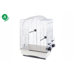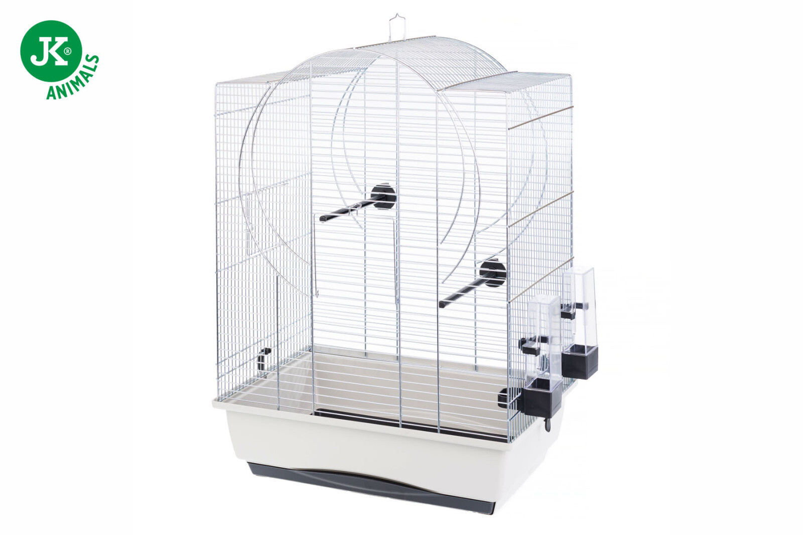Krásná klec pro střední a velké papoušky s výbavou. Součástí klece je základní vybavení (2× krmítko, 2× bidýlko). Dno klece má výsuvný šuplík, díky němu je čištění snadnější a pohodlnější.