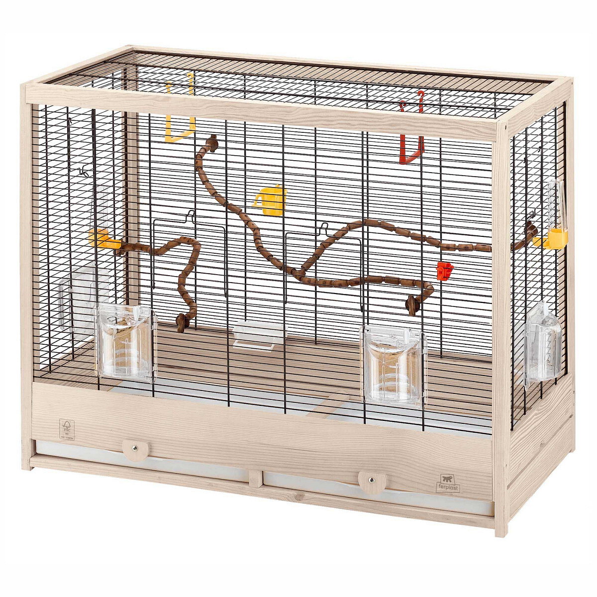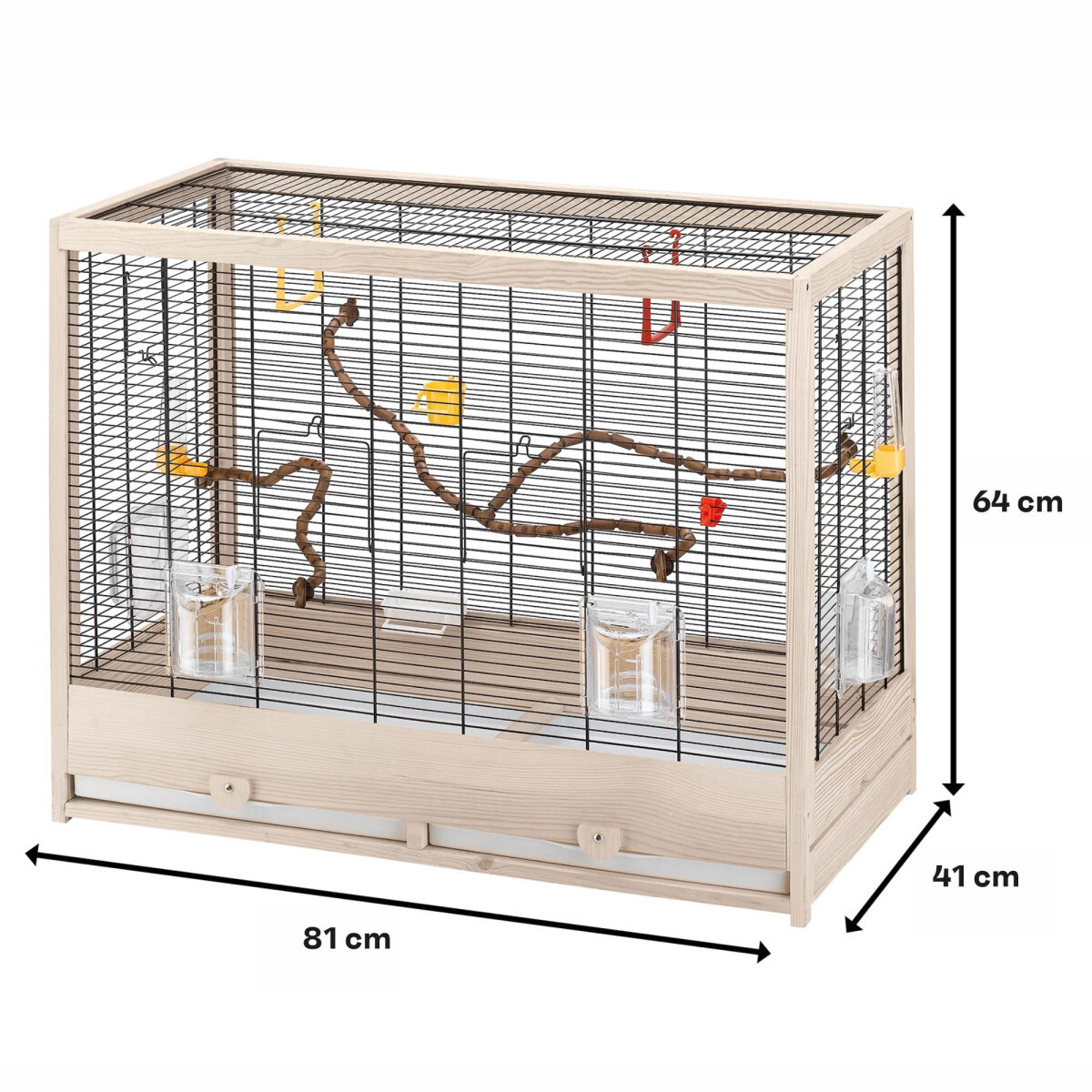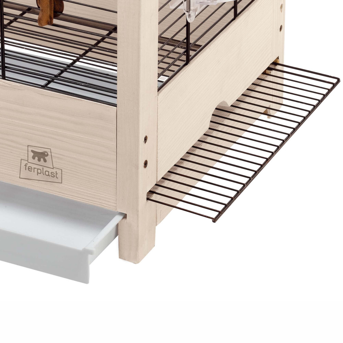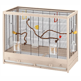 Elegantní klec Giulietta 6 pro kanárky, andulky a drobné exoty. Spojení krásy a elegance severské borovice s certifikací FSC™. Základem klece je robustní dřevěná konstrukce. Nákupem tak podporujete správné a zodpovědné lesní hospodaření. Dřevo je ošetřeno speciálním, netoxickým a dlouhotrvajícím nátěrem, který je odolný vůči UV záření, odpuzuje vodu a má protiplísňové vlastnosti. To vše pro maximální bezpečnost a dlouhou životnost klece. Mřížka je pak vyrobena z recyklovaného materiálu s odolným barevným lakem.