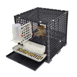 Modulární klec pro křepelky od české značky AGROFORTEL. Jako jediná na trhu neomezuje Vaši fantazii při budování Vaší křepelčí farmy. Můžete složit libovolný počet těchto klecí do strany, tak i na sebe. Křepelčí farmu tak můžete rozšiřovat podle potřeby či případně rozdělovat na více úseků. Rozměry klece jsou 42x42x42 cm. Klec je vyrobena speciální technologií lisování plastu. Klec má 1 oddíl. Součástí balení je vysouvatelný trusník, napáječka 1 L, krmítko, mřížka proti plýtvání krmivem a snáškové hnízdo, do kterého se sami kutálejí vajíčka. Díky tomuto hnízdu jsou vajíčka vždy čistá a nepoškozená. Oproti ostatním materiálům má plastový materiál výhodu snadné údržby a odolnosti vůči virům a bakteriím!