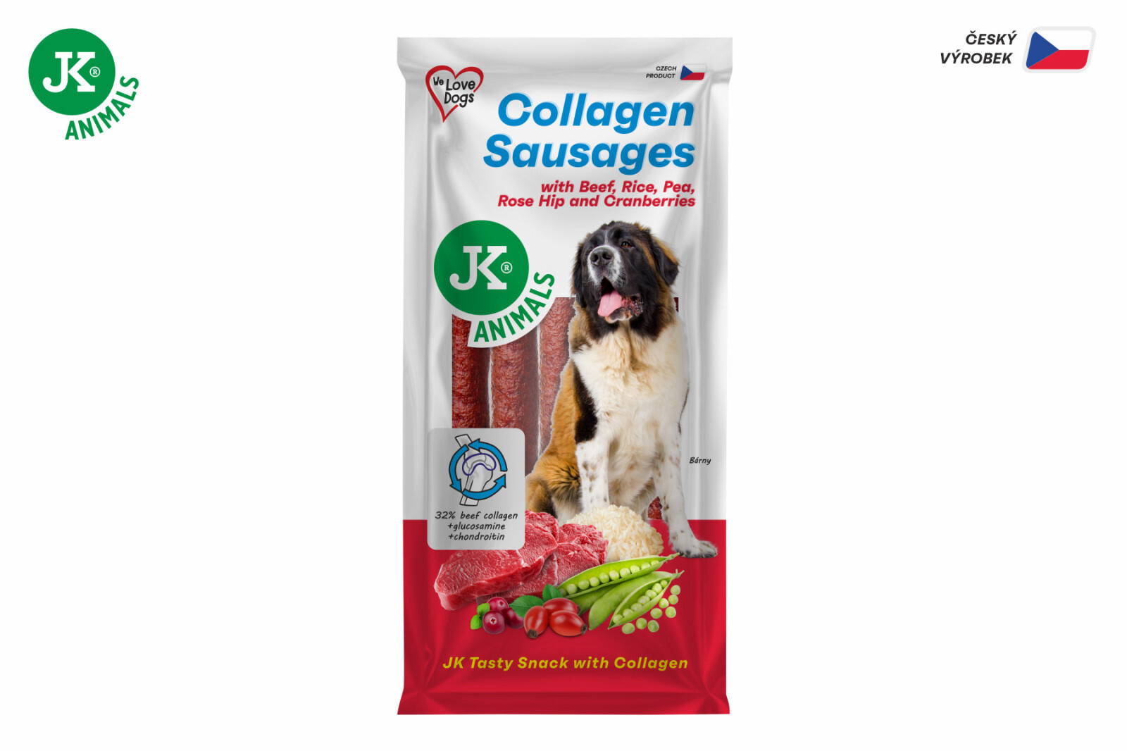 Kolagen je funkční doplněk pamlsku, který příznivě působí na chrupavky, kloubní pouzdra, vazivové tkáně, kosti, kůži, srst i stěny oběhového systému. Je to jejich základní stavební zpevňující prvek a je velmi důležitý i pro štěňata a psy v období růstu. Dostatek kolagenu v těle je důležitý i při poúrazové rekonvalescenci. Kolagen obsahuje ve zvýšené míře aminokyseliny, které se v jiných bílkovinách téměř nevyskytují. Urychluje také regeneraci mikrotrhlin ve svalech, které vznikají zejména vytrvalostní zátěží. Pamlsky s kolagenem jsou důležitým doplňkem ve stravě psa.