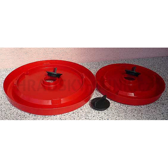 - ve středu talíře je plastová zátka s těsněním(okroužkem), kterou se plní