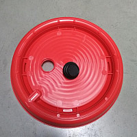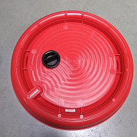 Klobouková napáječka o průměru talíře 35 cm a obsahu 15l s rukojetí, která se plní dnem.