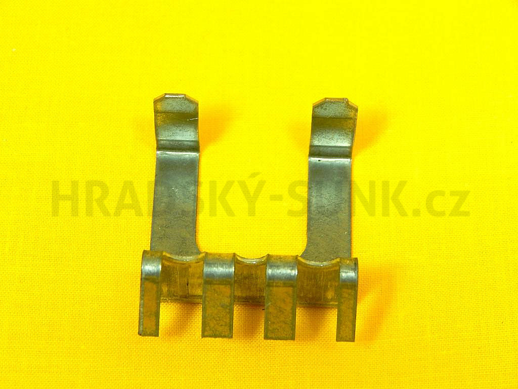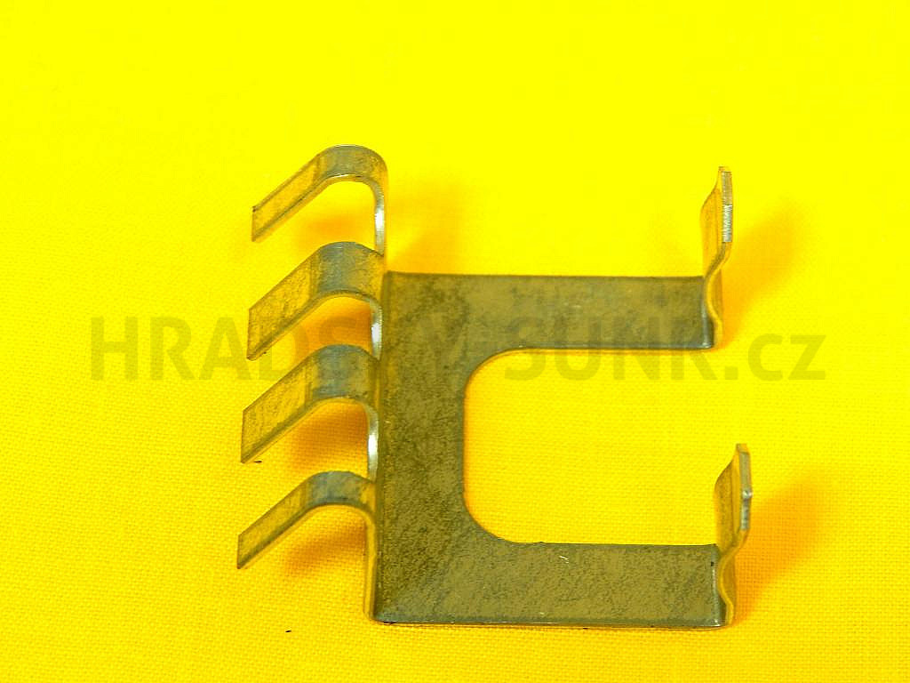 Kovový pozinkovaný úchyt k napáječkám č. 0267, 0273, 2118. Napáječky se vloží do úchytu-držáku a zadní ohnuté háčka se zavěsí na bodované pletivo do potřebné výšky a zmáčknou.