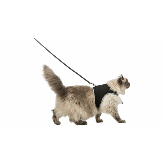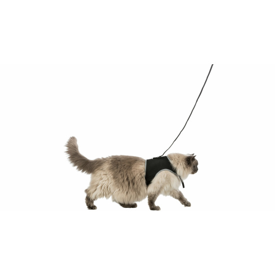 Měkký postroj s vodítkem pro kočku XL, 36 -54 cm/1,2m černý