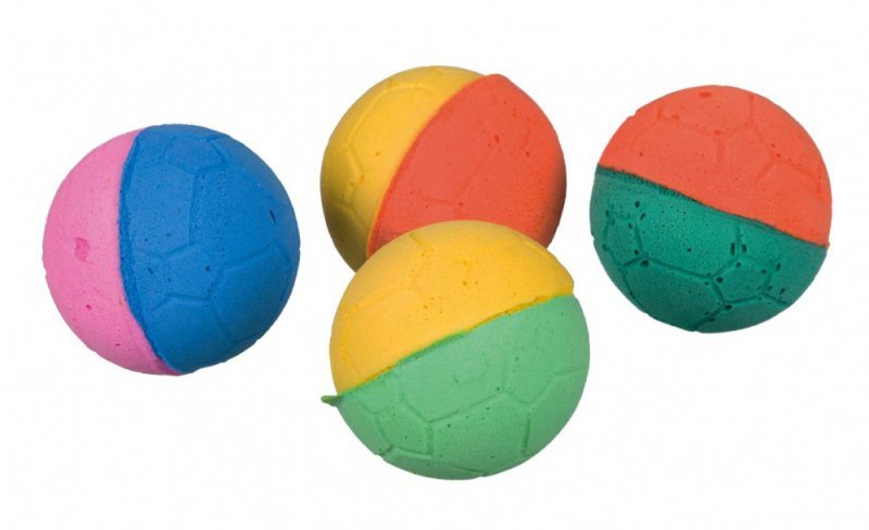 Míčky z mechové gumy v různých barevných kombinacích, podporují hravost a zábavu pro kočky.