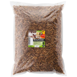 Larvy sušeného moučného červa jsou 100% přírodní doplňkové krmivo ptáků, ryb, ještěrek, leguánů, želv, žab, ježků, křečků, myší, potkanů a jiných malých savců, koček a psů.