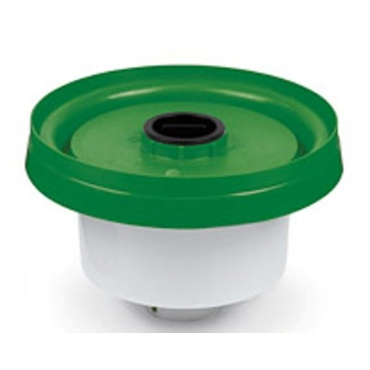 Velmi kvalitní napáječka, která se plní dnem, šroubovacím otvorem a zátkou. Není třeba při plnění dělit nádobu a talíř, dělí se pouze při čištění od nečistot, nebo řas, způsobené teplem. Napáječku lze zavěsit , nebo položit a z dálky je vidět, kolik vody je uvnitř. U všech napáječek je lepší, když jsou umístěny pod přístřeškem, pokud prší a je napáječka volně ve výběhu, jsou stěny talíře i uvnitř znečištěny.