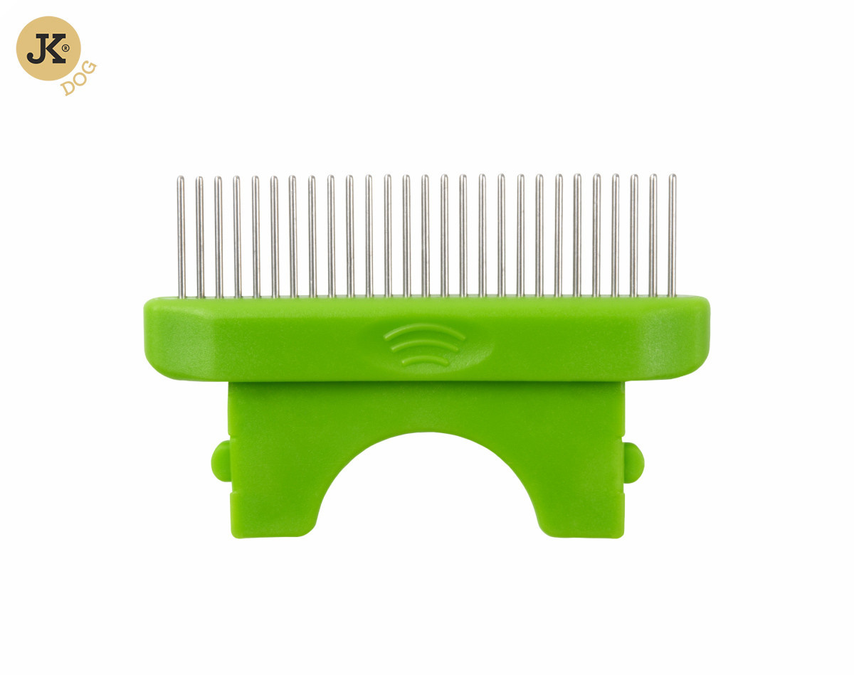 - U tohoto nástavce jsou hroty nasazeny hustě vedle sebe, aby vyčesaly co nejvíc podsady a odumřelé srsti.