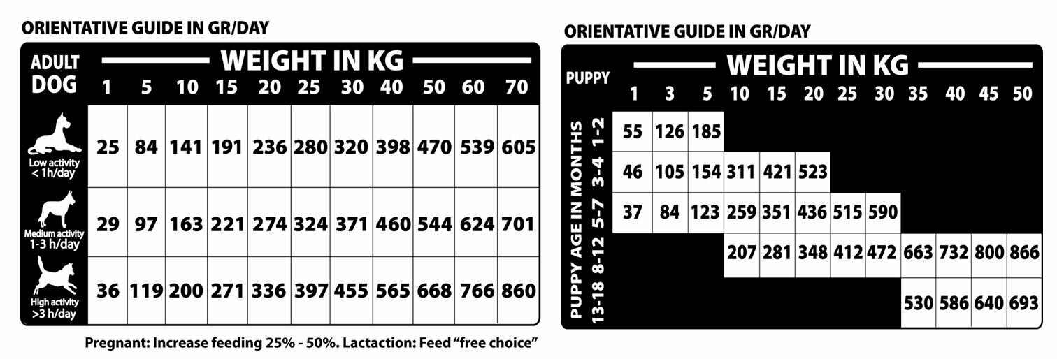 Analytické složení: Hrubý protein (28 %), hrubé oleje a tuky (16 %), hrubá vláknina (3,75 %), hrubý popel (7,85 %), vápník (1,7 %), fosfor (1,15 %), omega 3 mastné kyseliny (1,1 %), omega 6 mastné kyseliny (2,75 %).