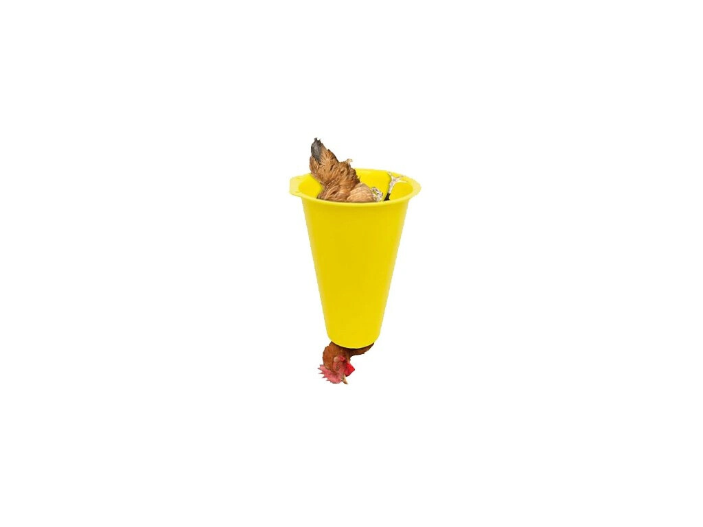 Plastový odkrvovač drůbeže vhodný při porážce středně velké drůbeže jakou jsou slepice a kachny. Určený k bezpečnému přidržení drůbeže, aby nedocházelo ke zraněním před usmrcením a při následném odkrvení. Rozměry výrobku horní průměr: 29 cm, spodní průměr 9,5 cm, výška: 38 cm.