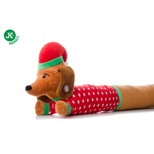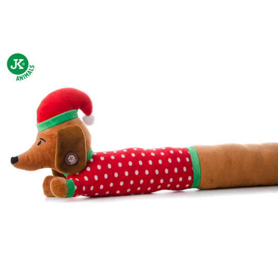 Plyšový jezevčík XL X-Mas, 96 cm, extra dlouhá plyšová pískací vánoční hračka pro psy