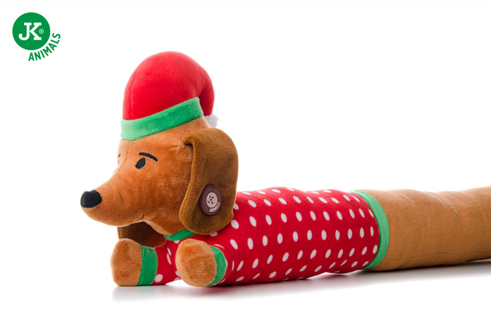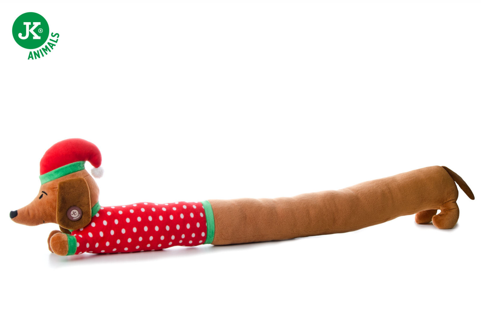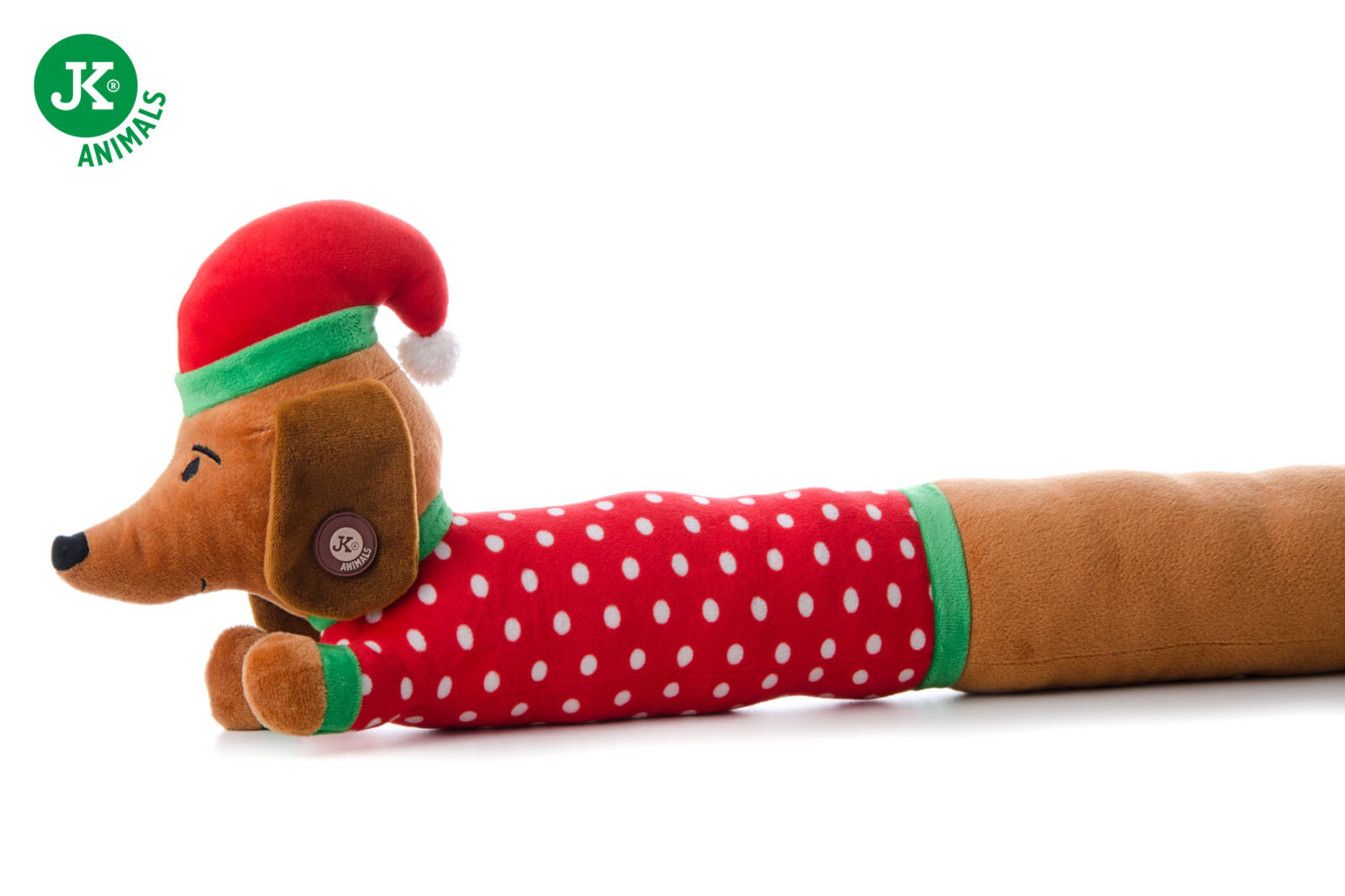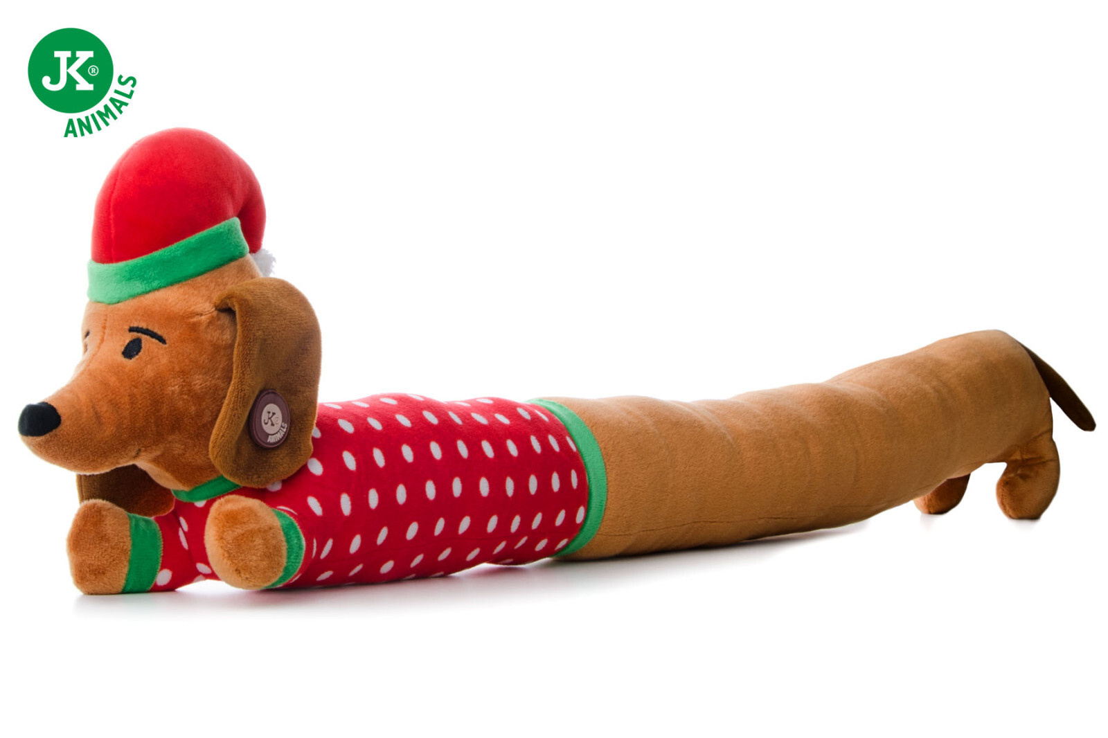 Plyšový jezevčík XL X-Mas, 96 cm, extra dlouhá plyšová pískací vánoční hračka pro psy