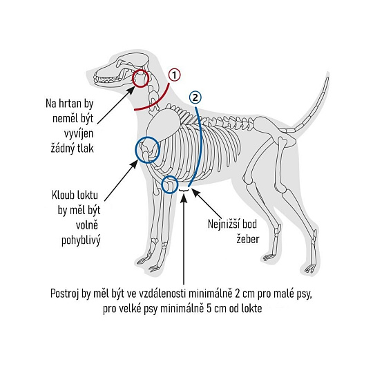 2. kroužek pro upevnění vodítka na v oblasti hrudníku (lze schovat, když se nepoužívá)