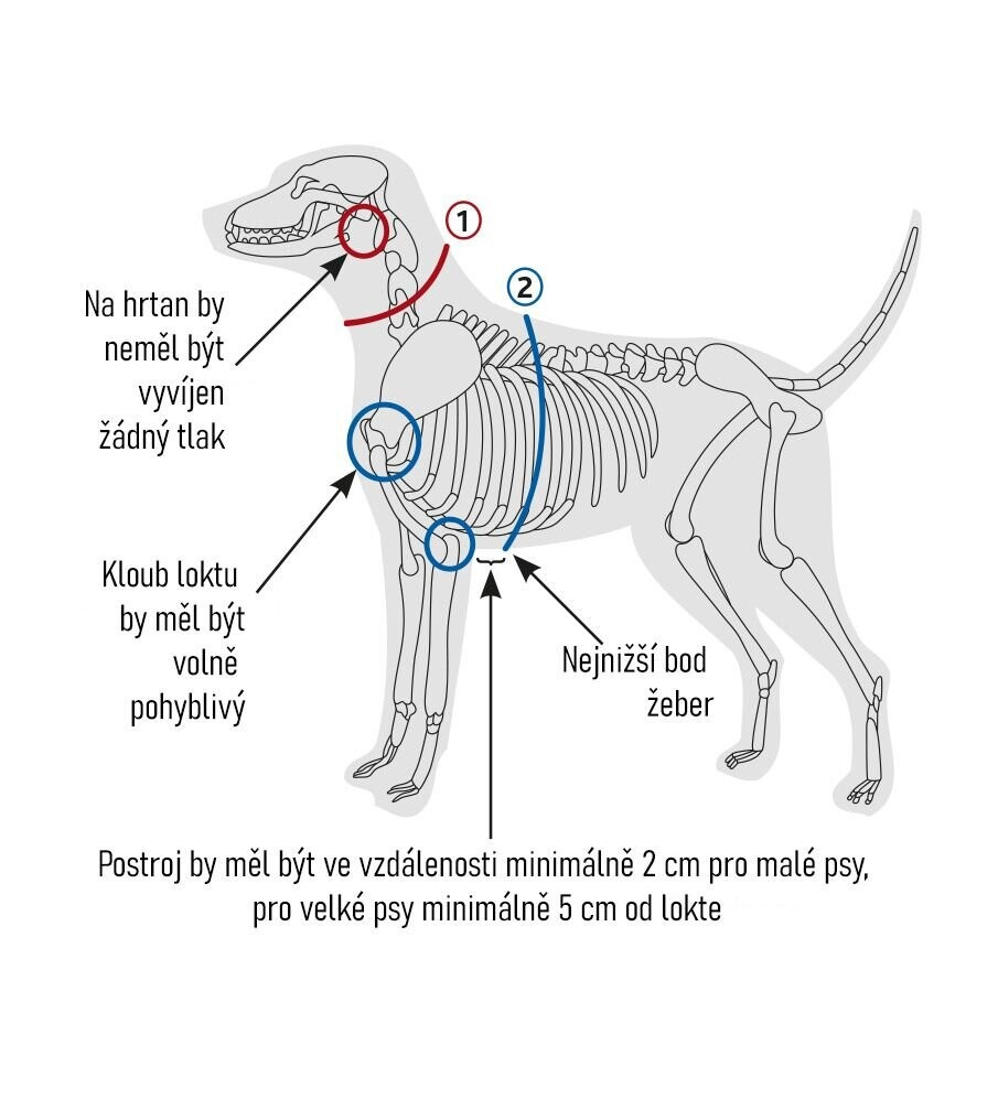 2. kroužek pro upevnění vodítka na v oblasti hrudníku (lze schovat, když se nepoužívá)