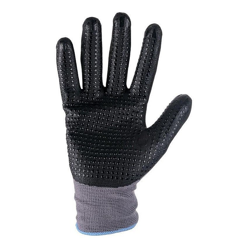 Bezešvé rukavice z jemného směsového úpletu, dlaň a prsty povrstveny nitrilovou pěnou s prodyšnou úpravou MICROFOAM a nitrilovými terčíky pro lepší úchop.