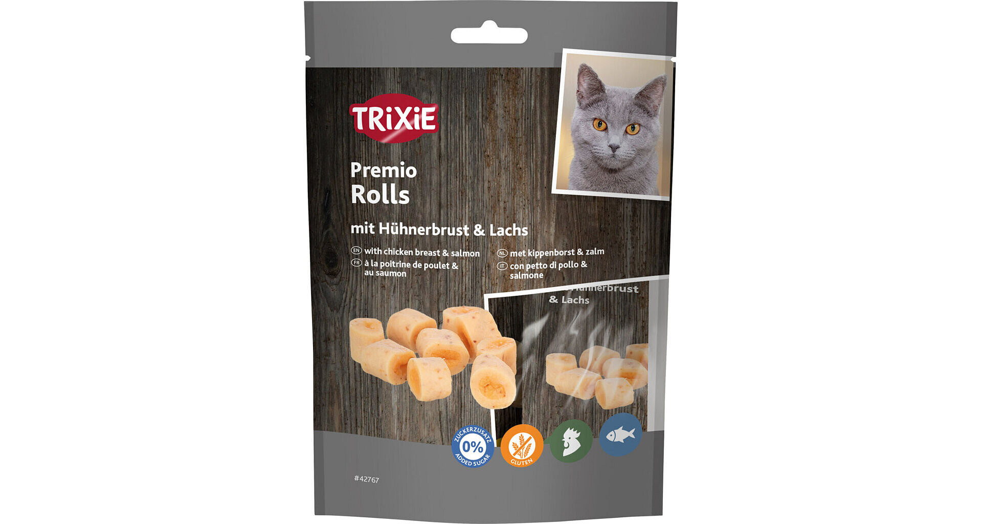 PREMIO Rolls, válečky s kuřecím a lososem, obsah masa 72 %, 50 g
